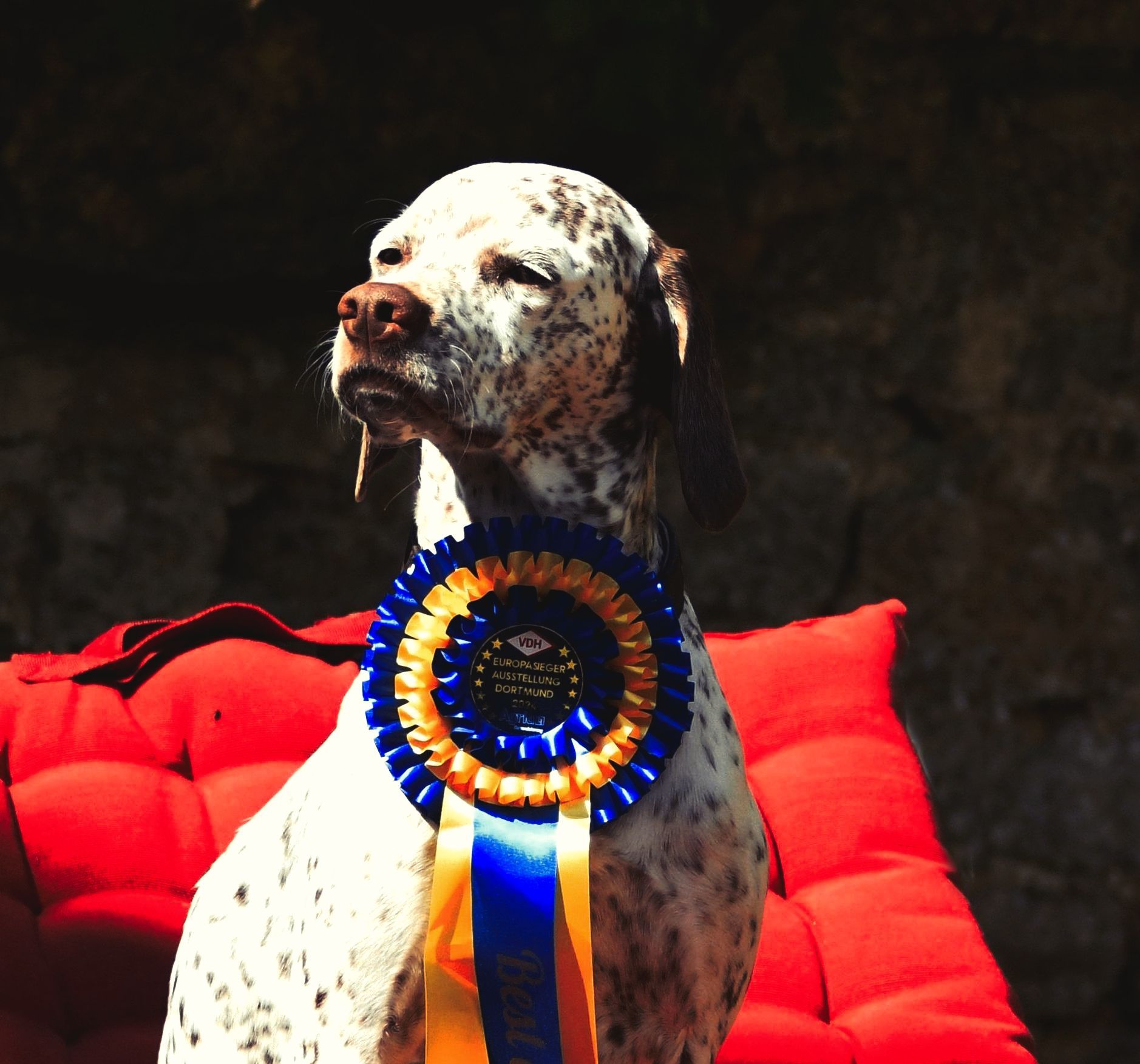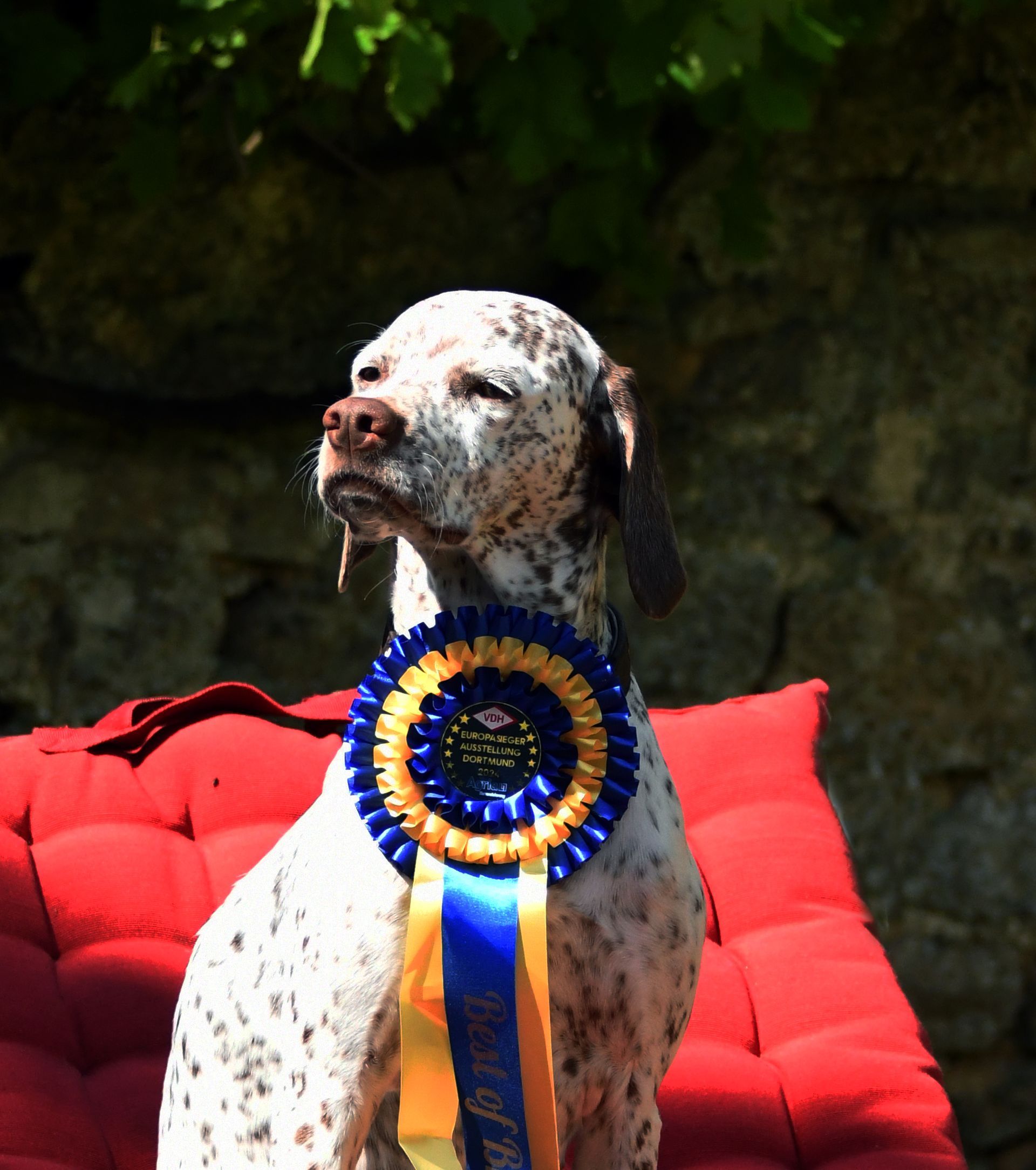 Felicia ist „VDH-Europasieger“, als auch „German-Winner“ das berechtigt zum Start in der Champion-Klasse. Ich bin kein Handler und Felicia ist lieber im Revier unterwegs, aber wir üben weiter...